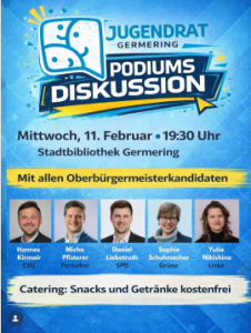 Am 5. Februar um 19:30 Uhr wollte Toni Hofreiter in unser neues Zentrum „Dein Raum“ in Fürstenfeldbruck (Pucher Straße 3) kommen und dort Ronja von Wurmb-Seibel (Landratskandidatin) und Jan Halbauer (Oberbürgermeisterkandidat) treffen. Krankheitsbedingt