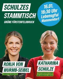 Am 16.01.2026 könnt ihr unsere Landratskandidatin Ronja von Wurmb-Seibel zusammen mit unserer Fraktionsvorsitzenden im Bayerischen Landtag Katharina Schulze treffen – leider in Nannhofen (Mammendorf ) und nicht in Germering.