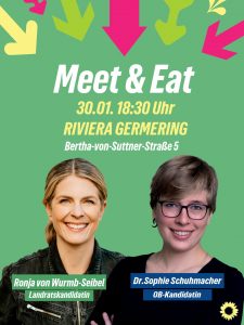 Am 16.01.2026 könnt ihr unsere Landratskandidatin Ronja von Wurmb-Seibel zusammen mit unserer Fraktionsvorsitzenden im Bayerischen Landtag Katharina Schulze treffen – leider in Nannhofen (Mammendorf ) und nicht in Germering.