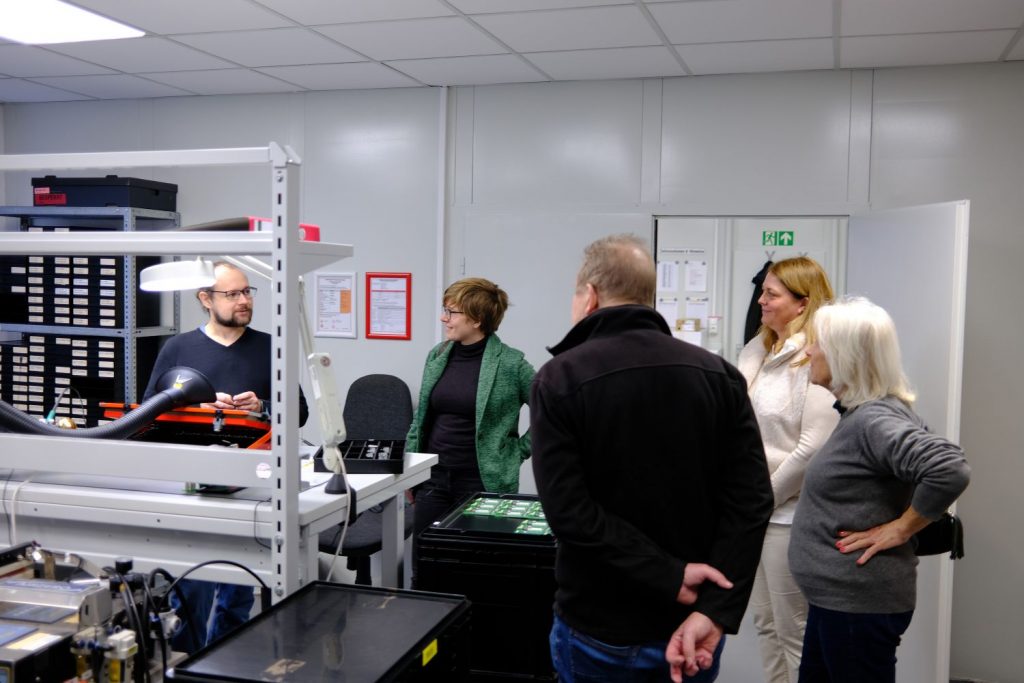 Am 5. Dezember stattete eine Delegation der Stadtratsfraktion der Germeringer Firma GEBE Elektronik und Feinwerktechnik einen Besuch ab. Seit Jahrzehnten in Germering ansässig hat sie seit kurzem alle Abteilungen in der Industriestraße zusammengezogen. Von der Konzeption über den Prototypen bis zur Produktion in großem Stil, vom Löten bis zu den letzten Schrauben, von Hardware bis Software: Alles geschieht direkt in Germering. Heraus kommen dabei Thermodrucksysteme, wie man sie aus Ticketautomaten kennt – für die jeweilige Nutzung spezialisiert. Der Nachhaltigkeitsgedanke findet sich nicht nur in der Produktion vor Ort, sondern auch in der Langlebigkeit. Und wenn doch einmal ein Gerät defekt ist – Anteile im Promillbereich -, dann wird repariert, auch wenn es preiswerter wäre einfach ein neues Produkt zu schicken.