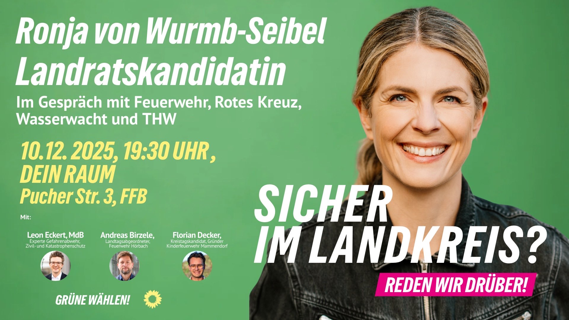 Am 10.12.2025 diskutiert unsere Landratskandidatin Ronja von Wurmb-Seibel ab 19:30 Uhr in unserem neuen Veranstaltungszentrum „Dein Raum“, Pucher Straße 3 in Fürstenfeldbruck mit