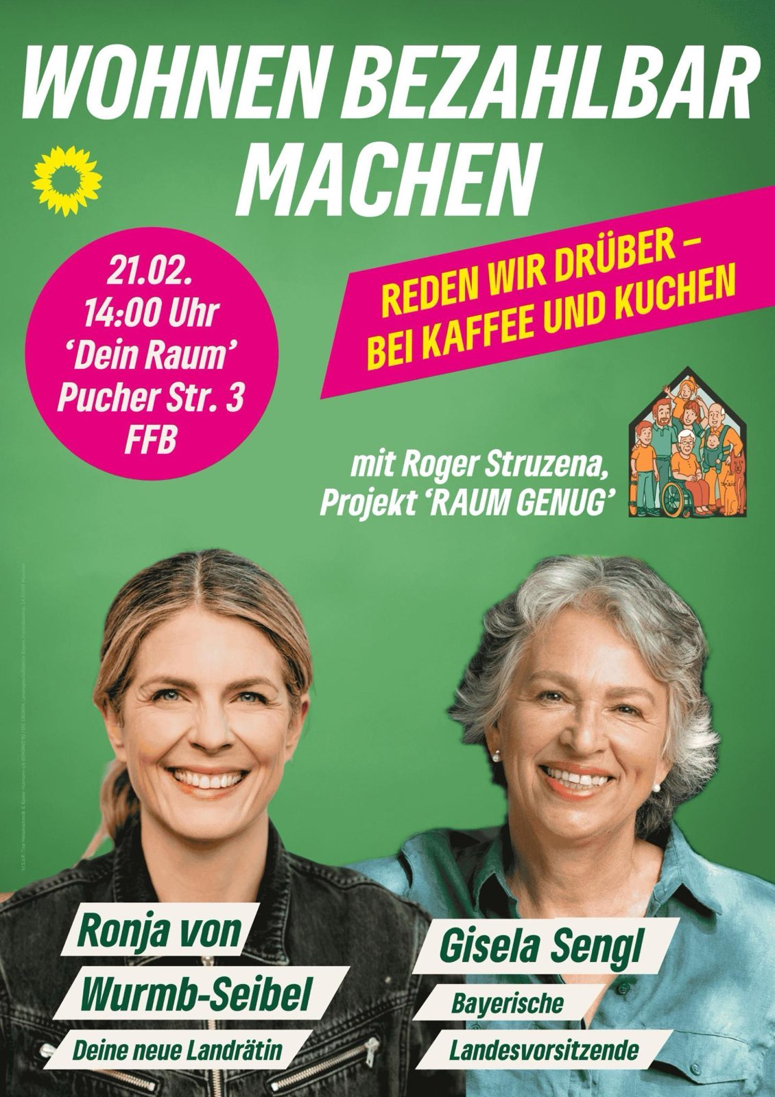 Am Samstag dem 21.02.2026 um 14 Uhr sprechen unsere Landratskandidatin Ronja von Wurmb-Seibel und unsere Landesvorsitzende Gisela Sengl in lockerer Atmosphäre mit euch über die Kosten des Wohnens.