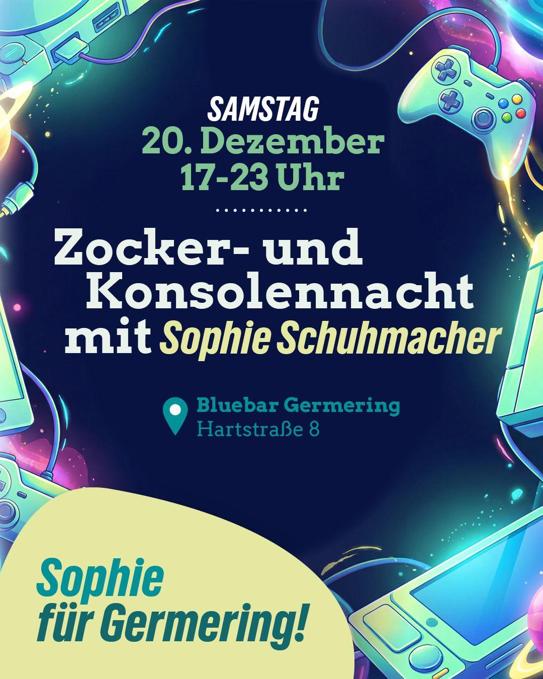 Unsere OB Kandidatin Dr. Sophie Schuhmacher lädt zur Zocker- und Konsolennnacht en.