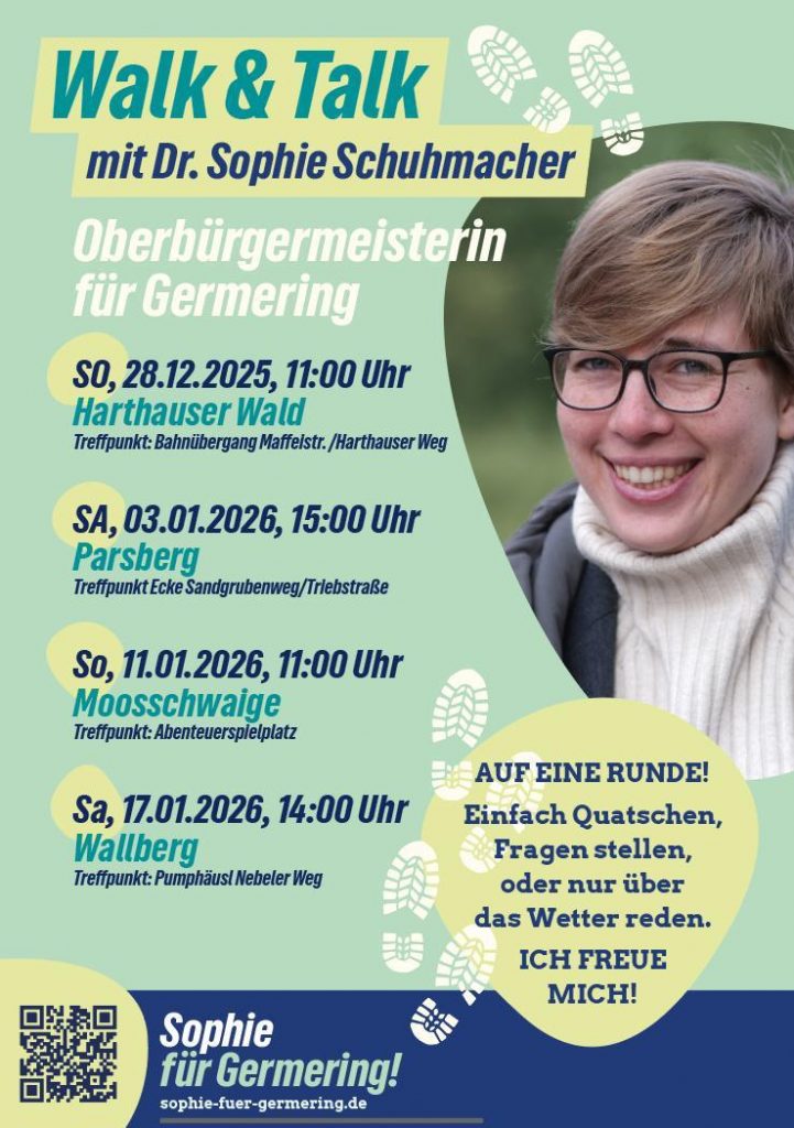 Nach Weihnachten setzte unsere Oberbürgermeisterkandidatin Dr. Sophie Schuhmacher das Format „Walk and Talk“ fort und lud zu Spaziergängen in Germering und Umgebung ein.