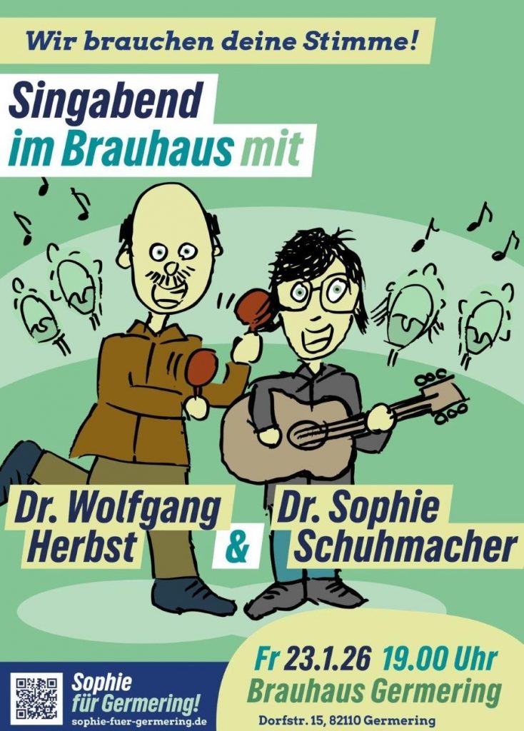 Am 23.01.2026 treffen haben wir uns im Brauhaus Germering unter „fachkundiger“ Anleitung von Dr. Wolfgang Herbst und Dr. Sophie Schuhmacher zum Singen getroffen.